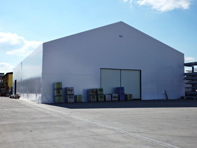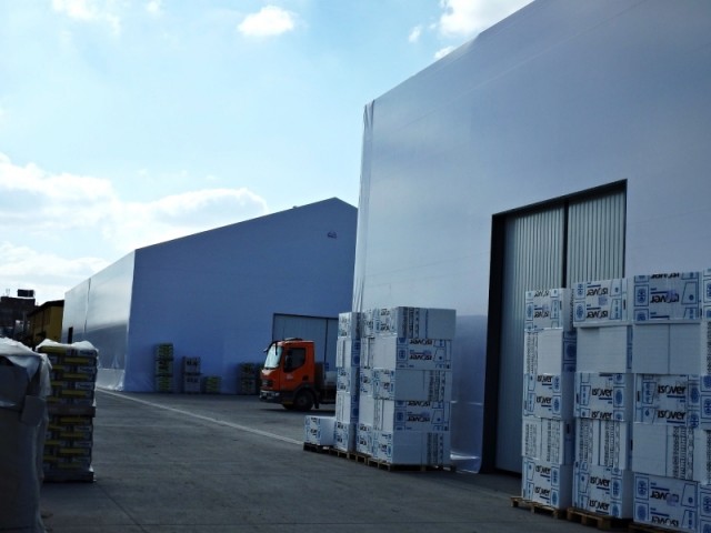 Na prianie zákazníka boli vyrobené dve rovnaké textilné haly. V každej hale sú troje vráta o veľkosti 6 x 4,2m. Vrcholová výška hál je 11 m. Haly sú postavené na betónovom základe, ktorý mal výškový rozdiel 50 cm. Oceľová konštrukcia haly je vyrobená z plnostenných stĺpov a priehradových väzníkov.Parametry haly