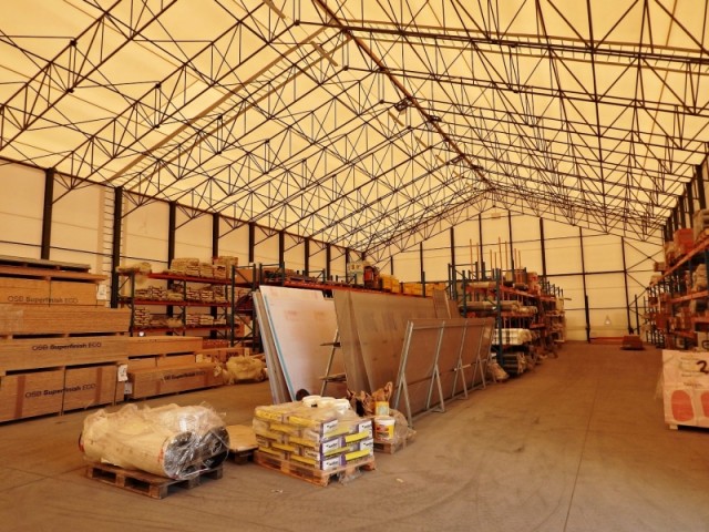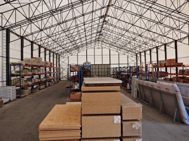 Sklad materiálu v stavebníctve.Zaujímavosť skladovej haly