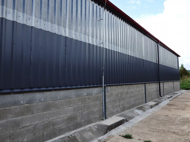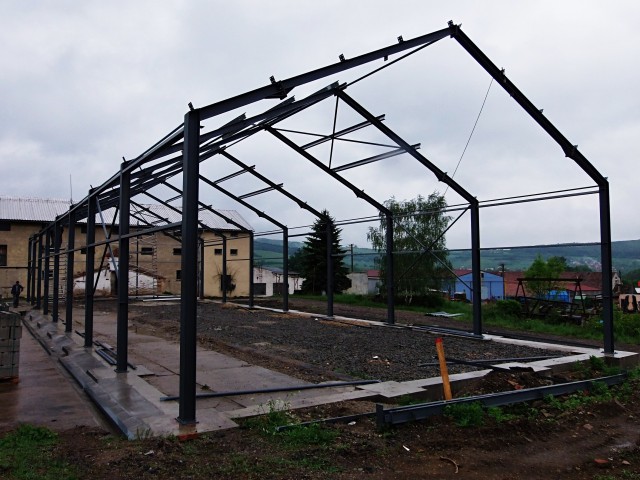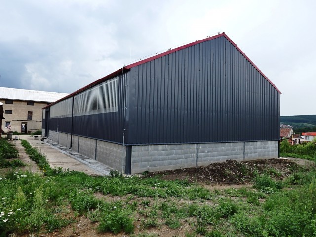 Hala je umiestnená na obvodových stenách a má dvojfarebné plechové opláštenie.Parametry haly