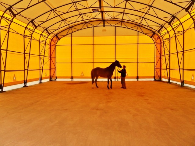 Kombinácia farebného textilného opláštenia na hale.Parametry haly