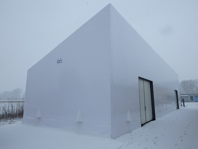 Hala je ukotvená na asfalt pomocou vyrovnávacej základne "U" ktorá vyrovná celkový základ pod halou. Montovaná hala má na streche samočinné ventilačné turbíny pre väčšiu cirkuláciu vzduchu v hale. Hala má 2 ks pojazdových plechový brány o veľkosti 4 x 3,5 m.Parametry haly