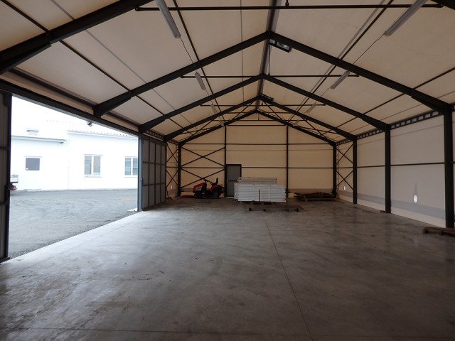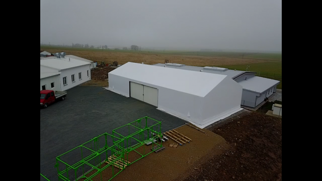 Hala je ukotvená na betónovú plochu. Montovaná hala má na streche samočinné ventilačné turbíny pre väčšiu cirkuláciu vzduchu v hale. Halu sme na prianie zákazníka doplnili o elektroinštalácii.Parametry haly