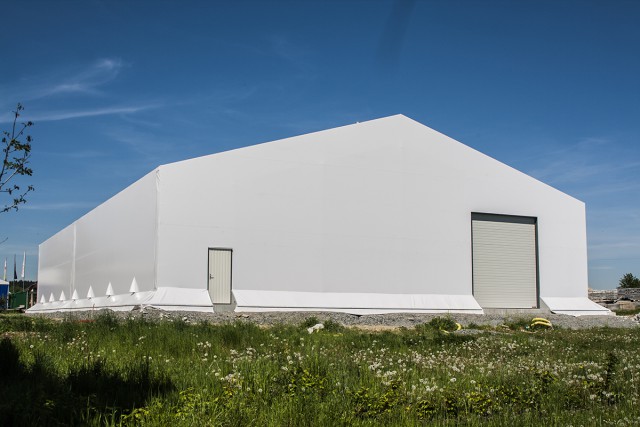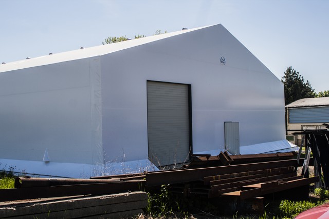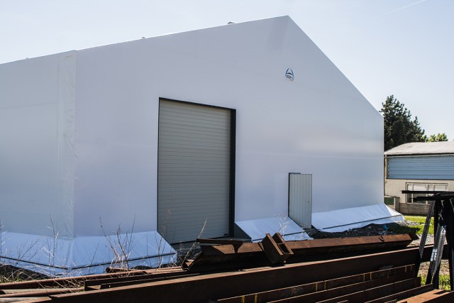 Na prianie zákazníka sme umiestnili na plachtovou halu 2 ks sekčných brán.Parametry haly