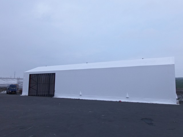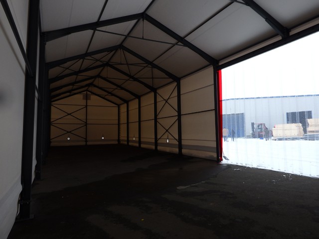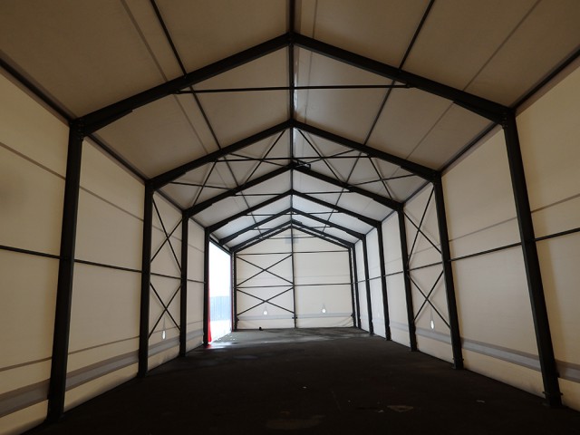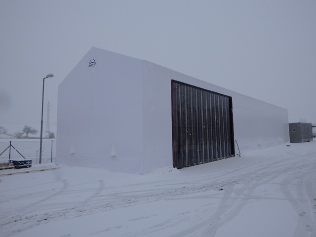 Hala je ukotvená na asfalt. Montovaná hala má na streche samočinné ventilačné turbíny pre väčšiu cirkuláciu vzduchu v hale. Na prianie zákazníka sme doplnili halu o priesvitnou clonu na boku haly.Parametry haly