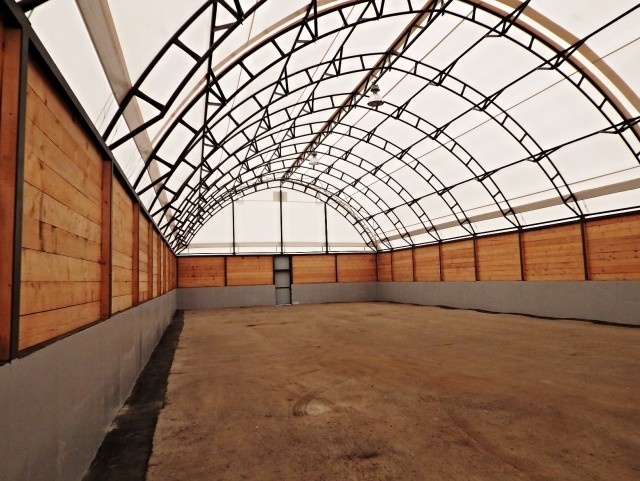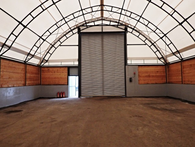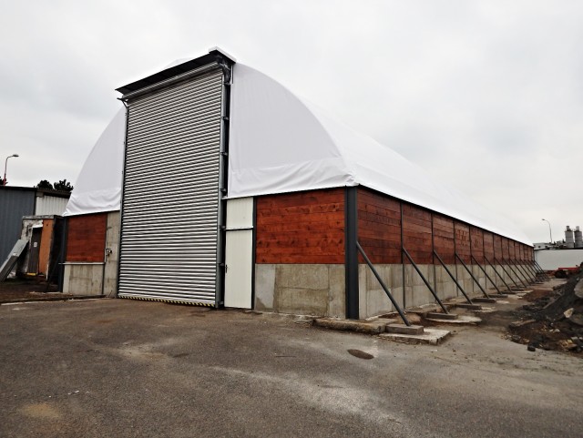 Na prianie zákazníka bola konštrukcia postavená na betónovú stenu, ktorá bola podopretá konštrukciou z vonku, aby vydržala tlaku soli, ktorá bude uskladnená v hale. Vnútri haly sme pre zákazníka inštalovali lampy. Prejazdová výška rolovacích brán je 6,2 m.Parametry haly