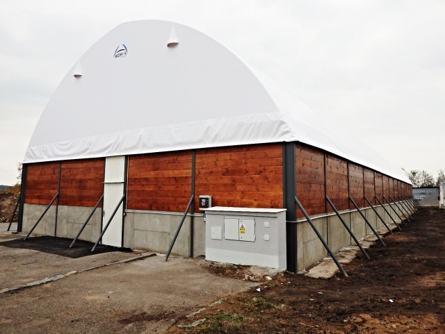 Sklad soli pre samosprávu údržbu ciest v Přelouči.ZAUJÍMAVOSŤ SKLADOVÉ HALY
