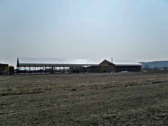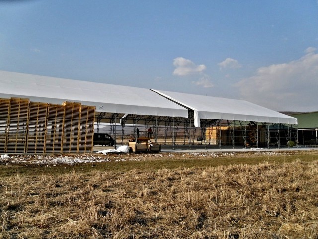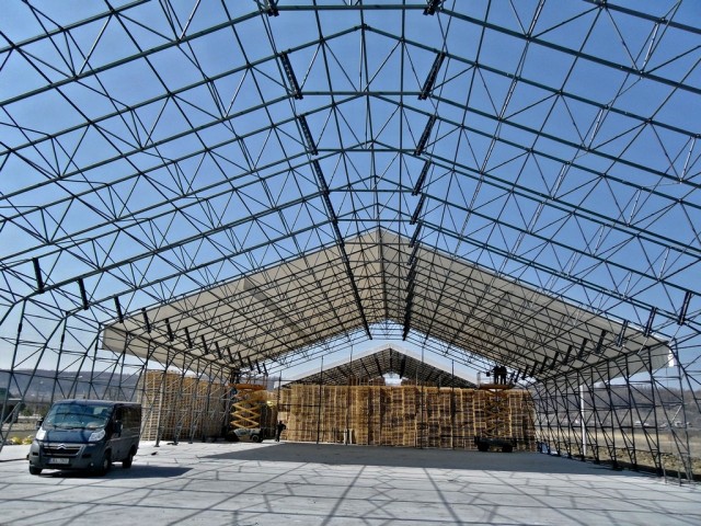 Nosné stĺpy haly sú zošikmené.Parametry haly